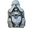 Estatuilla decorativa. Representa serenidad y reflexión. Ideal para decorar salones o jardines con un estilo oriental equilibrado. Parte del conjunto de “los tres Budas sabios”. Ideal para dar un toque de calma y armonía al hogar o jardín.